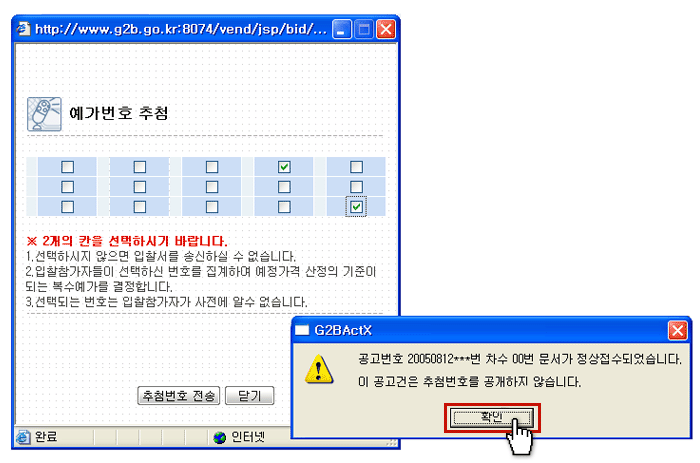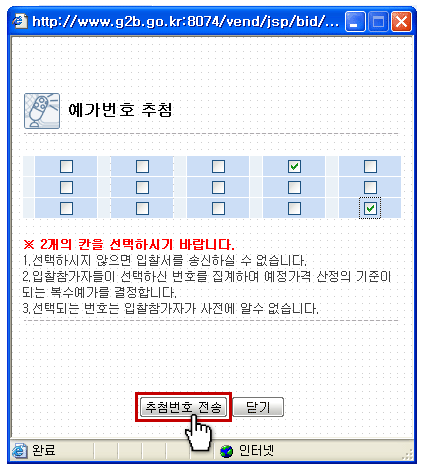 ¿¹°¡¹øÈ£ 2°³¸¦ üũ ÇÑ ÈÄ [Ãß÷¹øÈ£ Àü¼Û] À» Ŭ¸¯Çϼ¼¿ä. |