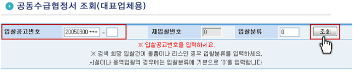 °øµ¿¼ö±ÞÇùÁ¤¼ ¾Æ·¡ ȸ鿡 ÀÔÂû°ø°í¹øÈ£ ÀÔ·Â ÈÄ [Á¶È¸] ¹öưÀ» Ŭ¸¯Çϼ¼¿ä. |